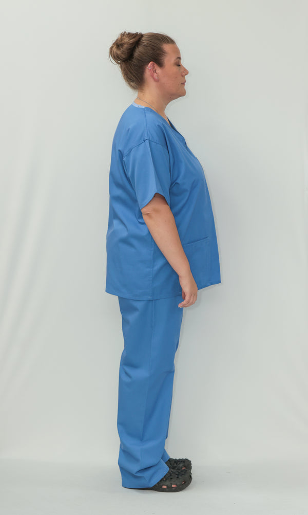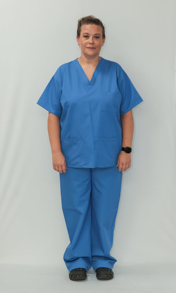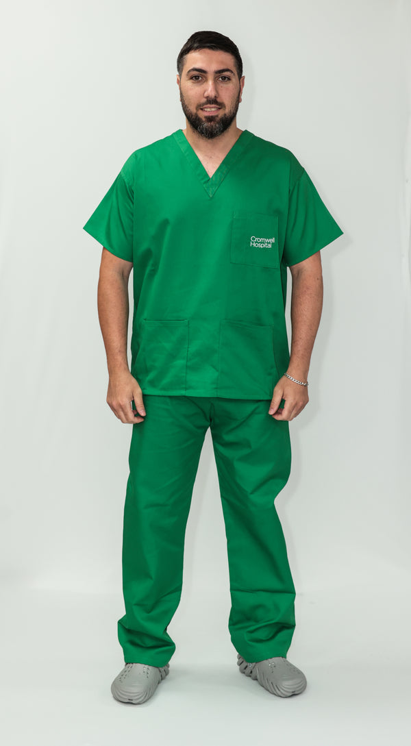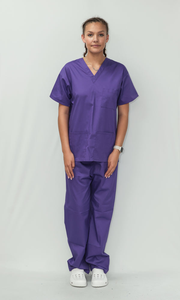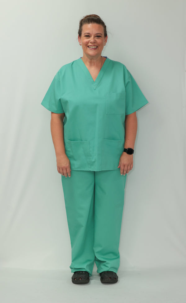 Our Unisex Scrub Set with customised embroidery logo is an ideal choice for healthcare professionals. Made from 65% Post Consumer PET Polyester and 35% Organic Cotton, these scrubs are breathable and durable. The V-neck top features one chest pocket and two hip pockets, offering practical storage for essentials. While the bottoms are a classic straight leg cut which gives a relaxed but professional fit. Available in a wide range of colours, including Black, Grey, Navy Blue, Light Blue, Royal Blue, Hospital Blue, Turquoise, Aqua, Jade Green, Maroon, Lilac, Purple, Bottle Green, Emerald Green and Red. With sizes ranging from X-Small to 2X- Large, these scrubs are sure to cater to every professional. Created to last, this scrub set is guaranteed for 2000 washes and can withstand washing temperatures up to 75°C, making it durable for regular industrial washing. As part of our sustainability mission, these scrubs have a carbon credit value and are included in our buy back scheme, allowing us to buy them back to be recycled again.